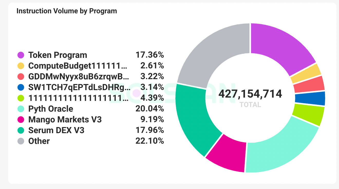 It takes ~30% of instruction volume on Solana