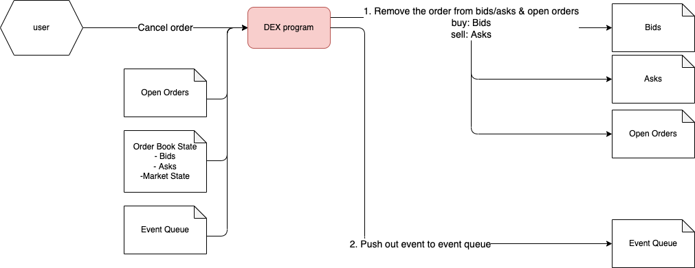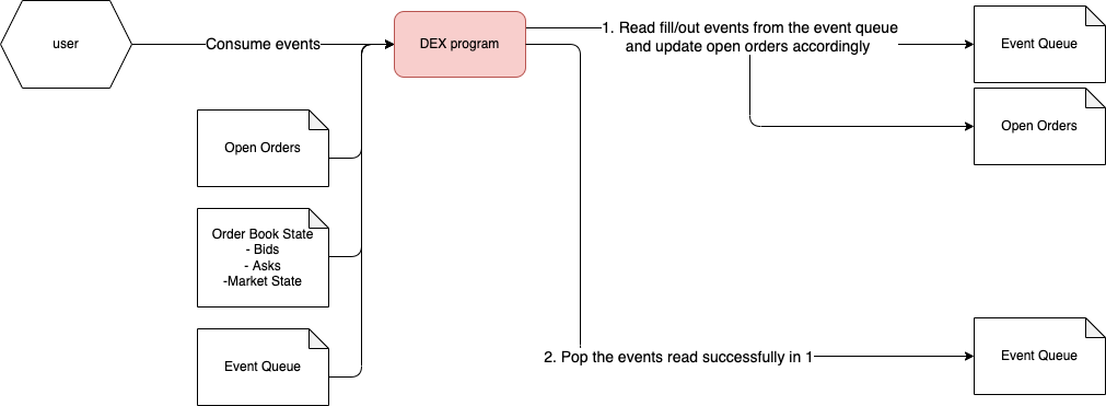 Event Queue records the events such as orders filled, orders cancelled, etc.