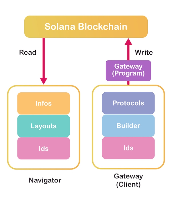 Gateway is a CaaS (Compasaility-as-a-Service) that standardizes inter-protocol interaction on Solana to unlock the potential of composability. It has an universal interface for various Solana DeFi elements (Pool / Farm / MoneyMarket / Vault / Leveraged Farm / ...) and serves as a common knowledge base that helps Solana community learn and improve.