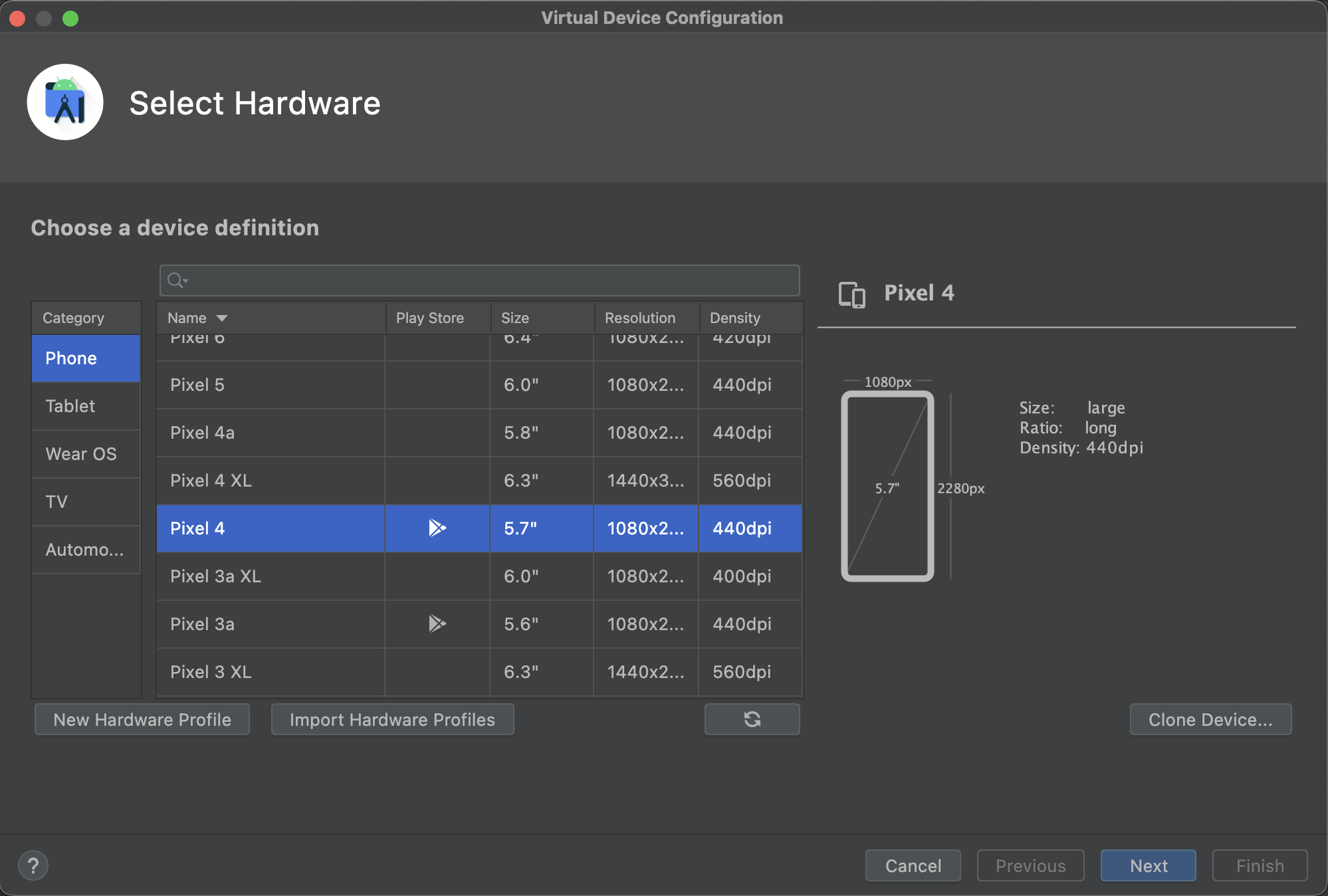 Creat a Pixel 4 Android virtual device