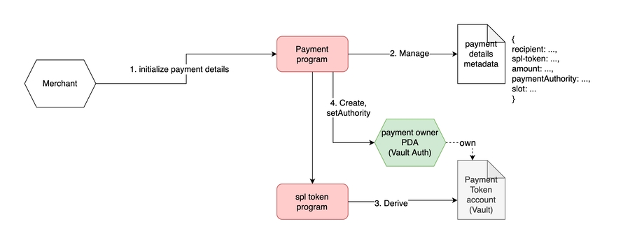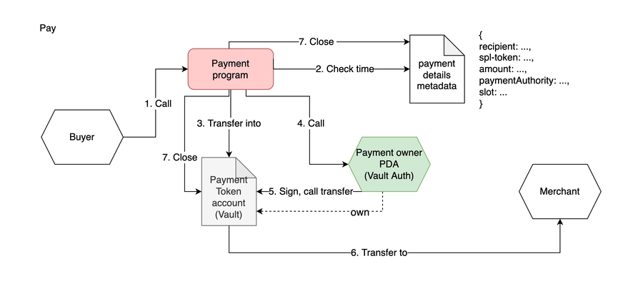 Notice that paying can just be consider as a single side escrow, while the initializer part won't need to transfer token into the vault, only the taker (buyer here) need to.