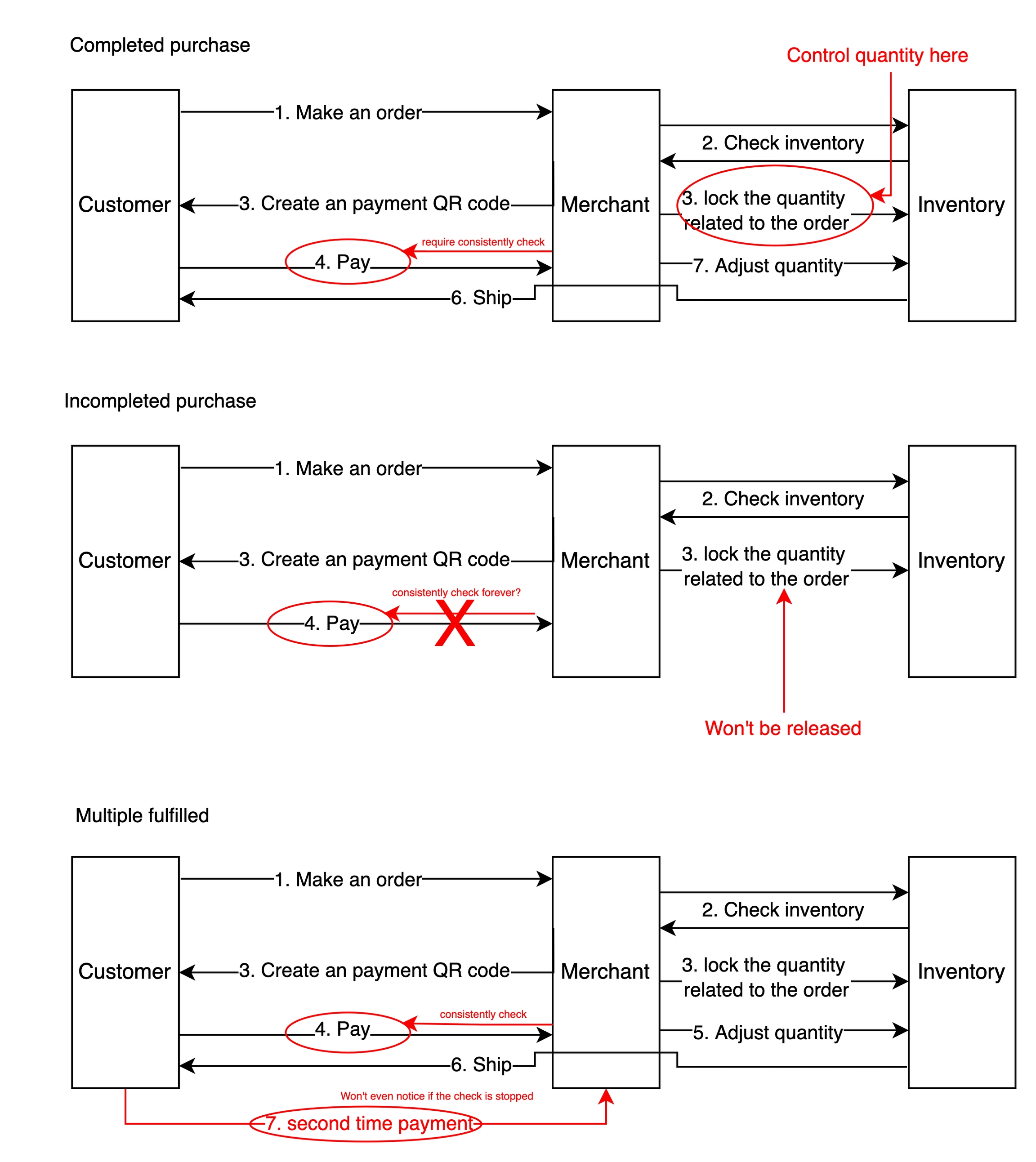 Essentially, the spirit of payment is a trade of value, where customer pay for merchant's product. Once the customer paid for the payment, the merchant will need to take the responsibility to either send product to the customer or refund. However, it faces difficulties in practice.