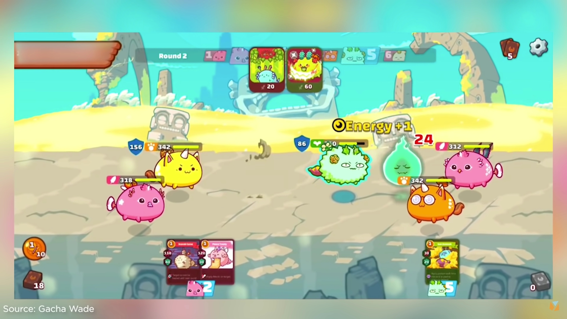 Axie Infinity: Two Axies breed to create new offspring with unique traits such as body parts, class, cards, etc. (Ronin; ETH side chain)