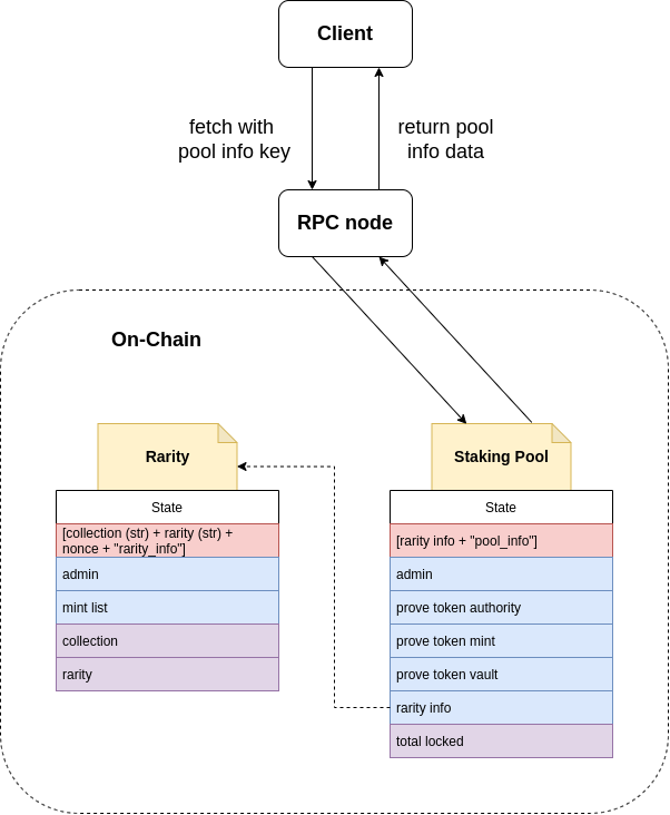 So we need to know which pool to stake first, because differnt NFTs rarity stake to different pools, and this is defined by initialization, and all the rarity info also stores on chain.
